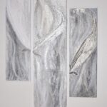 Fragment ist ein faszinierendes abstraktes Diptychon, bestehend aus zwei separaten, dünnen MDF-Platten, die mit einem minimalen Abstand zueinander an der Wand präsentiert werden und so eine subtile visuelle Verbindung und ein Spiel mit der Wandfläche erzeugen. Die Oberfläche beider Platten ist opulent in Goldtönen gehalten, wobei die Verwendung von Blattgold in verschiedenen Variationen schimmernde und changierende Effekte erzeugt, die das Licht auf besondere Weise einfangen. In dieses Goldensemble sind Fragmente eines speziellen Stoffes eingearbeitet, der in eine feste, gipsartige Form verwandelt wurde und so organische Texturen und Strukturen bildet. Skulpturale Elemente und Texturmassen ergänzen die Komposition auf beiden Platten und verleihen dem Werk eine zusätzliche haptische Dimension und Tiefe. 'Fragment' feiert die Schönheit des Unvollkommenen und die faszinierende Verbindung unterschiedlicher Materialien und Oberflächen in einem spannungsvollen Dialog zwischen den beiden Bildelementen. Es ist ein Blickfang, der durch seine edle Anmutung und seine vielschichtige Beschaffenheit Betrachter in seinen Bann zieht und durch den subtilen Zwischenraum eine besondere Leichtigkeit erhält.